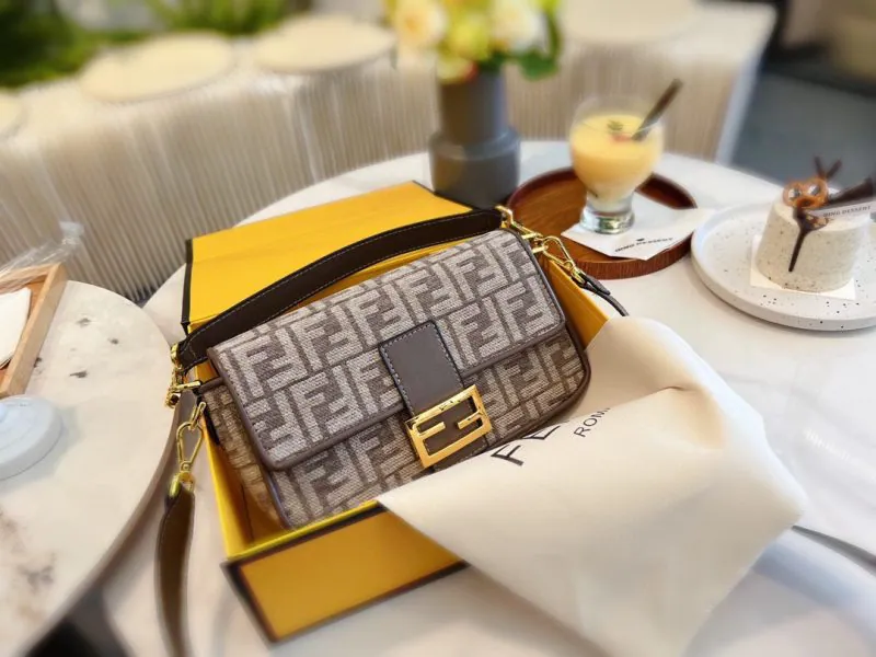 Fendi Vintage Baguette Baguette Dans la photographie de rue de la Semaine de la mode de Milan 2022, le sac le plus porté par les personnes à la mode est probablement le sac à aisselles de Fendi. Il est fait d'un tissu classique et a un style de rue paresseux. Des célébrités telles que Qi Wei et Rosie le portent également lorsqu'elles sortent dans la rue. c taille : 26 15cm