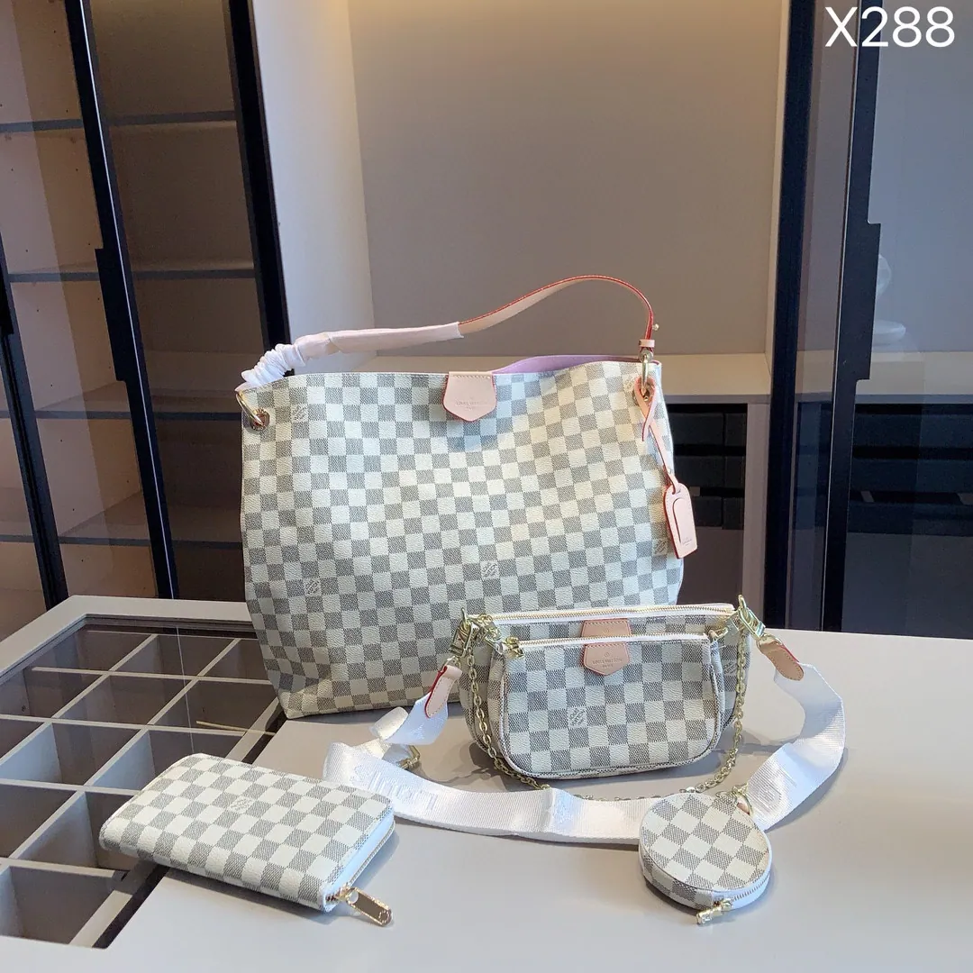 [Product Introduction] LV value five-piece set White grid series‼ ️LV new GRACEFUL shopping bag! Original fabric hardware! Large capacity! LV classic three-in-one mahjong bag! Three piece set! Super practical! Cute and versatile! Pair it with the classic long single pull wallet from the counter! A must-have for everyone!