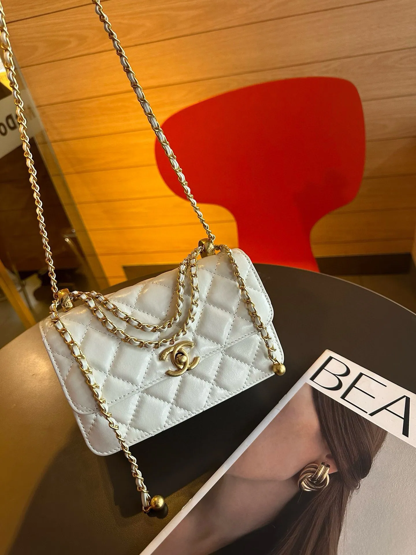 The double gold bead bag in the counter is back, a hot-selling item with high looks that everyone has been waiting for.