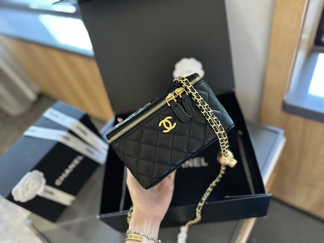 Chanels lille gullkulejusteringsspenne er utsolgt over hele verden. Chanels gullkuleveske er riktig, og Chanel er så populær at den er utsolgt. Hvilken jente elsker ikke den kompakte veskeformen og den søte lille gullkulen? Det er en klassisk svart og gullfarge med kaviar kuskinntekstur er behagelig og delikat. Den lille gullkulen på kjedet er også full av tekstur. 18 cm