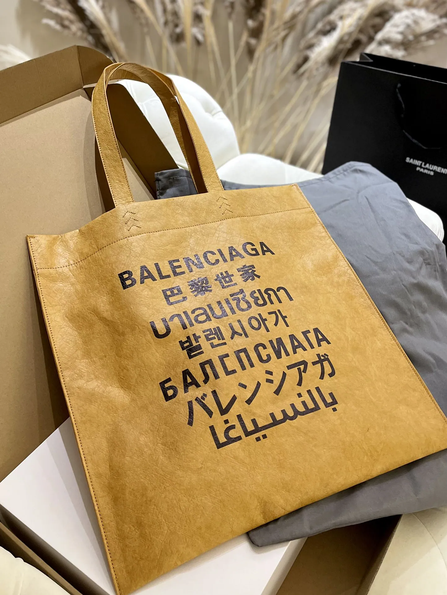 Balenciaga torba na ramię z papieru pakowego z literami siedmiu krajów