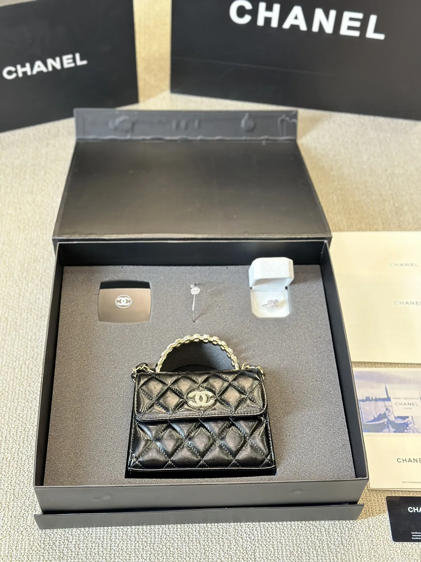 Chanel small waste bag with metal handle ➕mirror➕bracelet➕ring