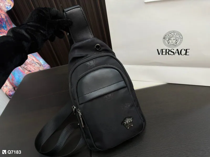 Versace axelremsväska, bröstväska, crossbody-väska, unisex, tillverkad av utsökta inläggningar, klassisk och mångsidig, fotograferad i verkligheten, originaltyg, storlek 15,30 cm